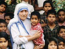 The wrinkled smiling face shining out from her blue trimmed white religious robes surrounded by poverty stricken children and people of the streets of Calcutta is but one of the enduring images of Mother Teresa.